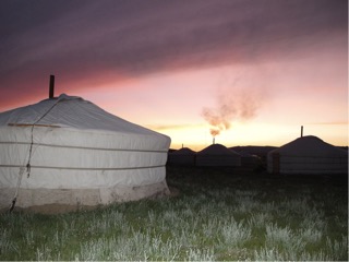Once again after sitting there for an hour, our passports returned, the guards sat on the station smoking with their bribes in their pockets while the passengers swapped goods, ran boxes up and down the carriages, and were masking tape up boxes half the night. The carriage attendants obviously all in on the activity, and a young policeman sleeping in the attendants room. It became extremely cold during the night and we had reasonable sleep, but we were up and ready by 5.30, an hour from Ulan bataar. The early morning sun on the hills and steppes is picturesque as we pass by many yurts, villages and camps. It is all very green but the grass is short. Quite a few small cow herds, and occasional horses. Many of the farmers are out and about.