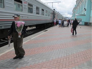 last evening was a whole new experience for the train. Our first 2 trains were upholstered, with a fold down mattress, but this one has vinyl seats, no padding to speak of, and a bed roll of possibly capok. We were given fresh linen to make our beds. We are by now quite experienced in stowing away our bags. There is lots of storage above the doorway where most of Lisa and janes things fit, and the rest fits under the lower seats. The carriages are a lot older than the Moscow trains, and ride quite smoothly. It is reasonably uncomfortable, but funny as well. We all had a reasonable sleep after a couple bottles of red. There were a lot of overnight train stops, some for only 2 minutes, some for 30 minutes. initially we didnt know jow to tell, but there is a timetable on the wall of the train, so we had to get used to matching up the name of the station with the Russian writing on the timetable. we brought a lot of food with us not knowing what we were going to get on the train, but the first morning stop today there were three shops, one of which had a small dairy case with yoghurt, salamis and meat, bread, cheese, lots of tinned and boxed goods, and even a few pieces of clothing. we took advantage of the 20 min stop to walk up and down the station. There is also a restaurant car which looks to be ok, and Shortly after leaving the station a lady walked through selling meat dumplings, and boiled eggs then later came through the carriage with a wheeled cart selling drinks and snacks. That was around 10am local time, and then at about 2pm we stopped in Omsk.