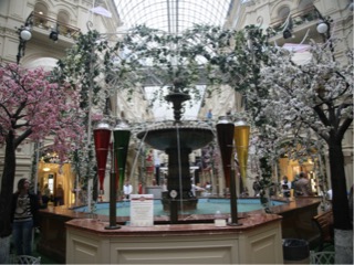 The guide walked us through the main area of Moscow shoeing us very interesting shops. One looked more like a palace inside than a food shop. We spent a few hours at red square talking and will return for kremlin tour tomorrow. It was raining a little but not cold so maybe better day for photos then. My lunch was borsch, a little pot of fried mushrooms in a sour cream sauce with cheese on top and a beetroot salad. Everyone had different food at a cafeteria style food store in GUM shopping Centre