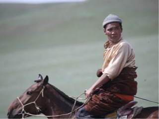 Traditional states that women cannot come too close so we kept a distance. On the walk we also saw a yak with some cattle, large flocks of sheep of several varieties, and about 40 horses were penned up in order to catch some for riding and then let go again. We had a good opportunity to watch the boys aged from 7 to 11 exercising their horses, 3 with saddle and one bareback. The older stockmen with handmade boots, and traditional farm wear, the boys with more store-bought varieties. The bridles and whips all homemade.