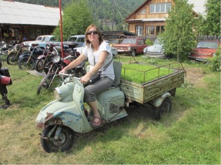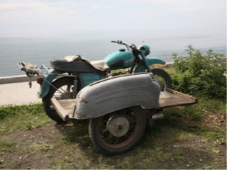 The small country villages are every few kilometers and unfortunately they look like something out of a poverty stricken country. Russia supposedly the sixth most affluent country has left it’s ancient farming communities and small villages to self survive. Elderly folk are mainly left in these towns with little money, and grow all of their vegetables in a limited season due to the cold and snow. The houses are mostly unpainted pine or cedar and ramshackle with bits and pieces added on and falling apart. Rooves are tin and asbestos. Nearer to the larger cities are proper made roads, bridges, and huge blocks of apartment buildings, bigger than I have seen anywhere. Railway yards are busy busy busy with long trains around 70 carriages full of coal, fuel, scoria, train tracks. Today we saw some very old motor bikes from the 50s with sidecars I would say, tried to get a quick photo but a bit far away. settled down to another night on our hard benches for a second nights sleep.