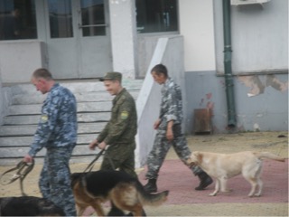 Well we slept on and off and woke to a lovely sunny morning. We had been given a packed lunch from the motel which came in handy although we gave away our slabs of curd covered in some kind of fruit conserve. We also had boiled eggs, bread, cucumber, and water. During the day we decided to play cards in the dining car. There were 2 Mongolian women dressed up as French maids with blue mini skirts and aprons and lace pantyhose. They had prepared a luncheon for some French tourists, and before we went over to the Russian border the carriage was dropped off our train, so we couldn’t even go and sit there. Luckily we knew to bring our own food and water. The train was filled with all local Mongolian people, and prior to getting to the Russian Mongolian border there were great goings on. The had boxes and boxes and boxes of what we are not sure, but hardware, food, and beverages. They were moving it up and down all of the carriages and making quite a commotion. By the time the guards got onto the train they were all seated in their cabins. It was, as our guide said, a big game of mouses and the cat Each cabin was duly searched. Not much time was spent in our cabin, but they seemed to be in some cabins for ages. Dogs were brought on board. Once our passports had been taken we were allowed walk for an hour, and expected to be back on board to receive out passports. It was so stuffy and hot we sat outside as long as we could. The whole process took around three hours. After the passports were returned to us and prior to the train leaving the station, the cargo was moved up and down the train again while mayhem ruled, but the guards now on the station took little notice. The train slowly left the station ( payakali) and advanced a few kilometers to the border.