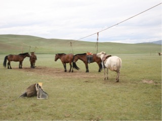 Our horseman daygi was ready with our horses so once we were fitted up with chaps and helmets we walked to the horse coral and each were fitted up with our Mongolian pony.