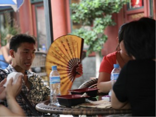 At the end of the meal we were served a hot cup of hot ducks broth which tasted like fat sprinkled with salt. although we are all really tired from the train trip it was still warm so we decided to sit on the footpath up from the hotel at a local cafe which served cold drinks and BBQ skewers cooked over an ancient fire, each time a new skewer of meat was placed over the coals to grill the guy would fire it up by blowing it with an electric hair dryer. The footpath was littered with food scraps and there were lots of locals there, and we sat amongst it all having a cool drink. Bed was very welcome tonight at 1230. Sorry no photos downloaded for today